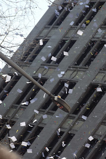 Of course at first I thought...maybe I shouldn't take them out of school, since I am taking them out next week. Then I thought well, little one hasn't missed a day of school yet. (and I am SO not in favor of the perfect attendance award thing so that didn't matter) Big boy got an awesome report card, a 98 on his Chemistry Regents...what the hell. I didnt' even hem and haw when I called little one in this morning. School lady said..."oh is he sick?" For a split second I thought to say yes. Then remembered that he already told his teacher he was going to the parade and got some work to do that he would miss today. (all on his own...I didn't tell him to do that) So I said "Well...no. He's actually sick of school today and I'm taking him into the city to the parade." She laughed and said "You know what? Good for you...family day is important."